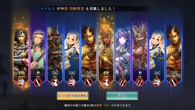 チュートリアルが終わると、SRが2体も手に入るガチャが引けるぞ!さらには引直ができるので、リセマラ不要でお目当てのキャラが引けるまで何回でも引きましょう!