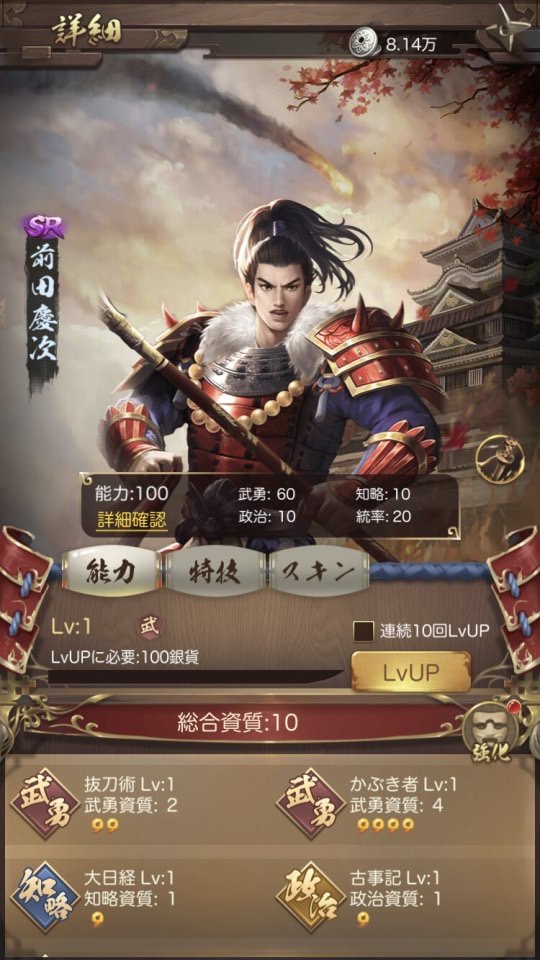 自分の家臣はレベルを上げたりスキルを強化したりして最強にしましょう!