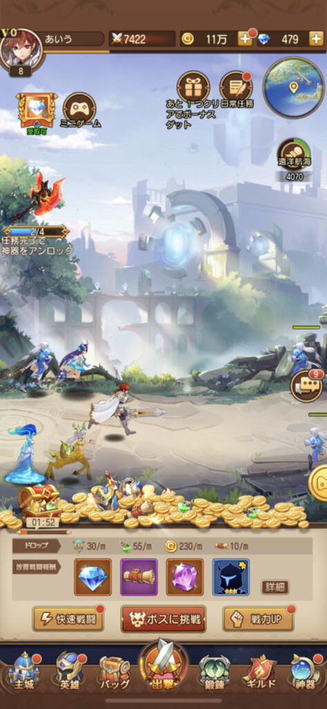 この作品はダンジョン検索、ボスバトル、クエスト、イベントなど多様なコンテンツを保有している。プレイヤーは、この豊かなコンテンツを楽しみながらキャラクターを育てることができます。ソーシャル要素として、ゲーム内で他のプレイヤーと交流することもできます。ギルドやクランに参加し、他のプレイヤーと協力して強い相手と向き合い、情報を共有します。とにかく、ハードワーク要素満載のゲームなので、ハードワークが好きな方にオススメです!