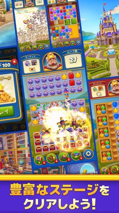ゲームは鮮やかで美しいグラフィックが特徴です。色鮮やかなピースや豪華なアイテム、リフォームされた王国の姿が目に楽しいです。また、ゲームプレイを盛り上げるBGMや効果音も魅力的です。